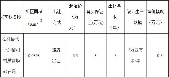 松桃縣長坪鄉黎明村靈官坳砂石場采礦權掛牌出讓公告