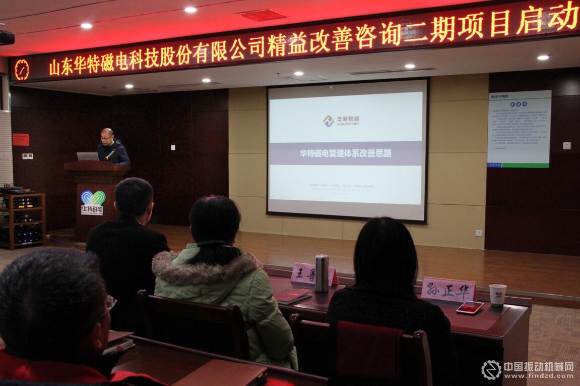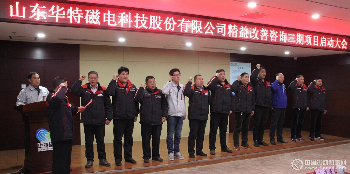 2018年1月14日,為進一步提升山東華特磁電科技股份有限公司管理水平,增強公司競爭力,實現企業高速發展,公司組織召開了精益生產二期項目的簽約、啟動儀式和誓師大會。公司董事長兼總裁王兆連、山東華制智能制造技術有限公司項目總監王樹功、項目經理王金泉等四位專家出席會議,公司常務副總裁劉風亮、高級副總裁劉梅、副總裁兼精益辦主任王建波、各部門負責人以及主管級以上領導參加會議。