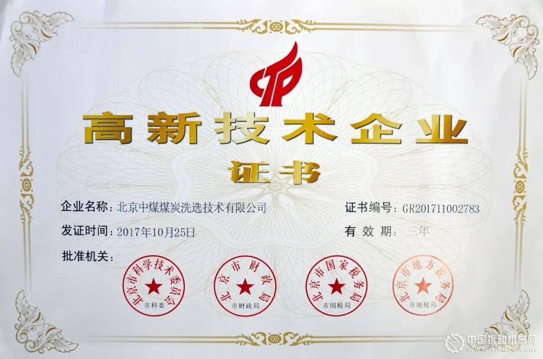近日,北京中煤煤炭洗選技術有限公司順利通過北京市“國家高新技術企業”復審工作,并獲得“國家高新技術企業”證書。