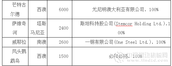 澳大利亞主要的鐵礦石生產(chǎn)礦山有:哈默斯利(Hamersley),揚(yáng)迪(Yandi)、芒特高茲渥斯(Mount Goldsworthy)、芒特紐曼(Mount Newman)、恰那(Channar)等。其中產(chǎn)能10000千t/a的礦山9座。各主要生產(chǎn)礦山的產(chǎn)能,如下圖: