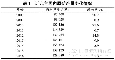 按照中國礦山協(xié)會的統(tǒng)計(jì)結(jié)果,2016年中國原礦產(chǎn)量折算成成品礦的產(chǎn)量不足4億t。這意味著國內(nèi)鐵礦石的產(chǎn)量遠(yuǎn)不能滿足我國鋼鐵生產(chǎn)需求。