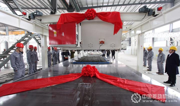 在1月19日的投產(chǎn)現(xiàn)場,大家共同目睹了6公分厚、1.7米寬、3.6米長樓板的制作流程。裝模、放鋼筋網(wǎng)、混凝土送料、布料機(jī)布料、振搗、預(yù)養(yǎng)護(hù)、收面、蒸汽養(yǎng)護(hù)、成品拆模起吊,全部過程都在自動(dòng)化流水線上一氣呵成。據(jù)介紹,一塊構(gòu)件,經(jīng)過蒸汽養(yǎng)護(hù),8個(gè)小時(shí)就可以達(dá)到設(shè)計(jì)強(qiáng)度。