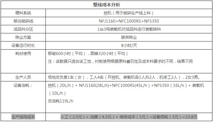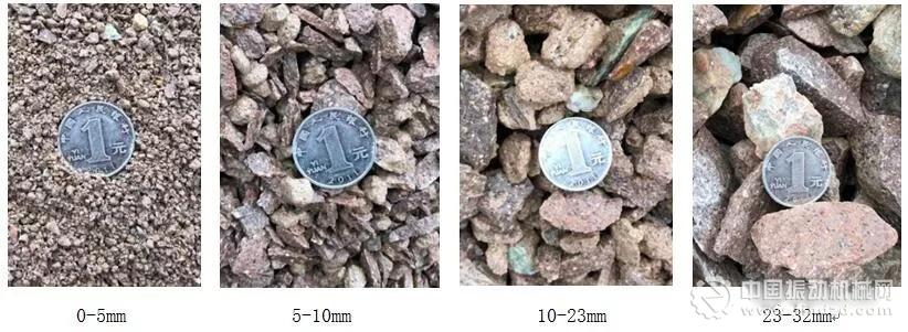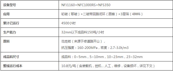 該項目原料成分為90%花崗巖、10%為開山過程表層土,該地區花崗巖密度為2.7-3.0t/m3、抗壓強度為160-200MPa,破碎篩分后堆積密度為1.3t/m3,屬于中等硬度及耐磨性石料,經過南方路機履帶式移動破碎生產線最終將石料破碎為:
