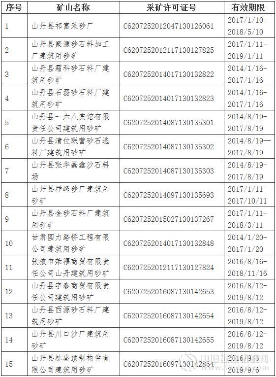 根據《甘肅省河道管理條例》相關規定和山丹縣機構編制委員會辦公室《關于調整河道砂石資源采礦管理職責的通知》(山機編辦【2017】7號)文件要求,縣國土資源局行使的河道砂石資源采礦管理職責已劃轉縣水務局,由縣水務局審批發放河道采砂許可證,縣國土資源局不再發放采礦許可證。為此,我局決定依法公告注銷山丹縣石磊砂石料廠建筑用砂礦等15戶礦山企業采礦權。