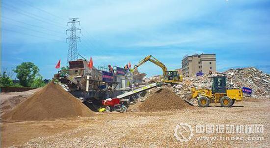 在位于崇賢街道廣亞新建材基地的建筑垃圾回收場地中,大量的建筑垃圾通過移動式破碎機的處理,分離出廢鐵、各類粗細骨料、免燒磚材料等可再生資源,變廢為寶重獲“新生”。