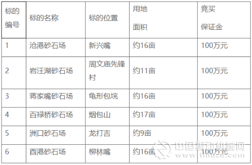 6個砂石廠共計占地約85畝,每個砂石廠競買保證金均為100萬元人民幣。