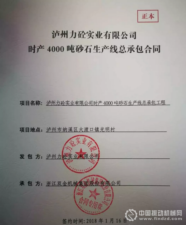 2018年1月16日,瀘州力砼實業有限公司時產4000噸砂石生產線項目總承包工程正式簽約。
