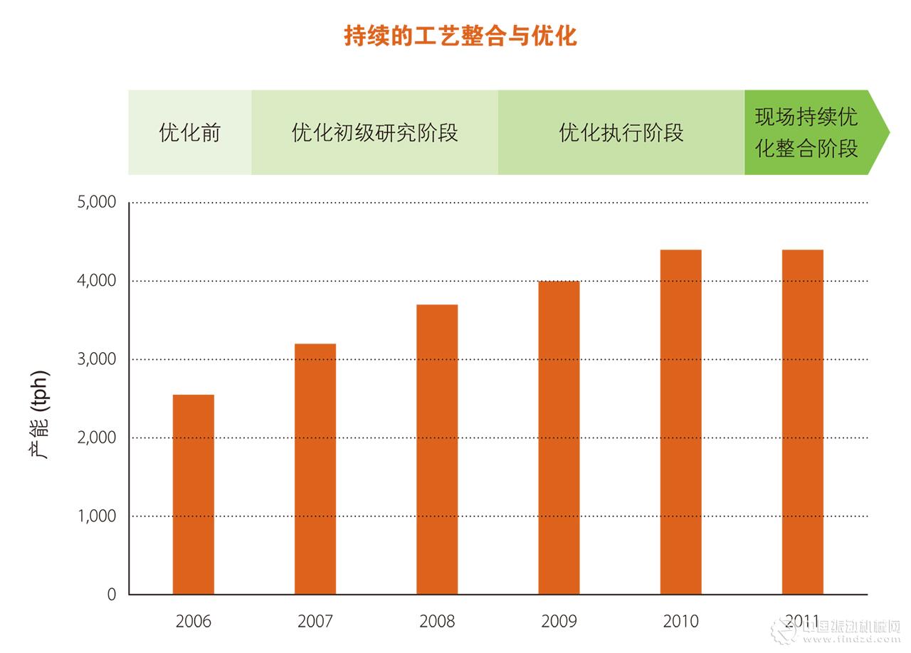 產量的大幅增加和整個生產系統的優化也大大提高了運行的能源效率,從而降低了噸產品能耗。
