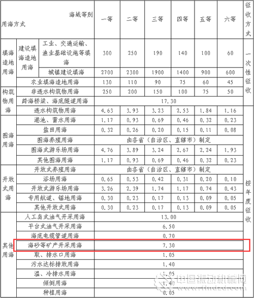 海域使用金征收標準