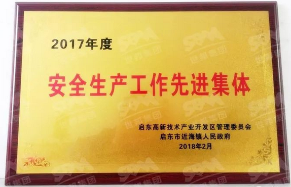近日,世邦集團喜獲啟東高新技術產業開發區及啟東市近海鎮人民政府評出的“2017年度安全生產工作先進集體”稱號。據悉,這是世邦集團繼2017年安全月被評為《安全文化建設一等獎》等獎項之后的又一榮譽。