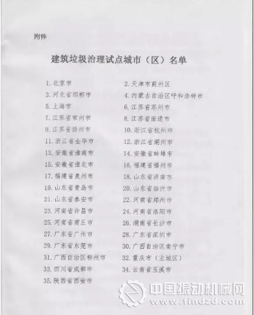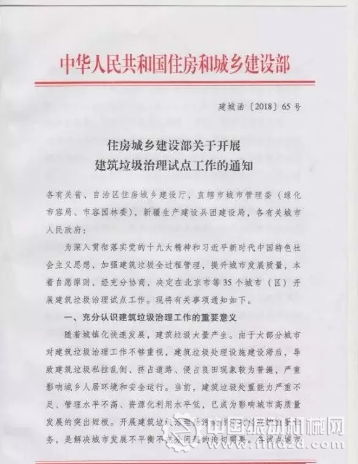 近日,為深入貫徹落實黨的十九大精神和習近平新時代中國特色社會主義思想,加強建筑垃圾全過程管理,提升城市發展質量,住房和城鄉建設部印發《關于開展建筑垃圾治理試點工作的通知》(建城函〔2018〕65號),決定在北京市等35個城市(區)開展建筑垃圾治理試點工作。