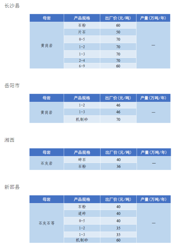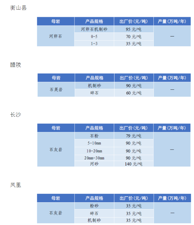 砂石 價格產量