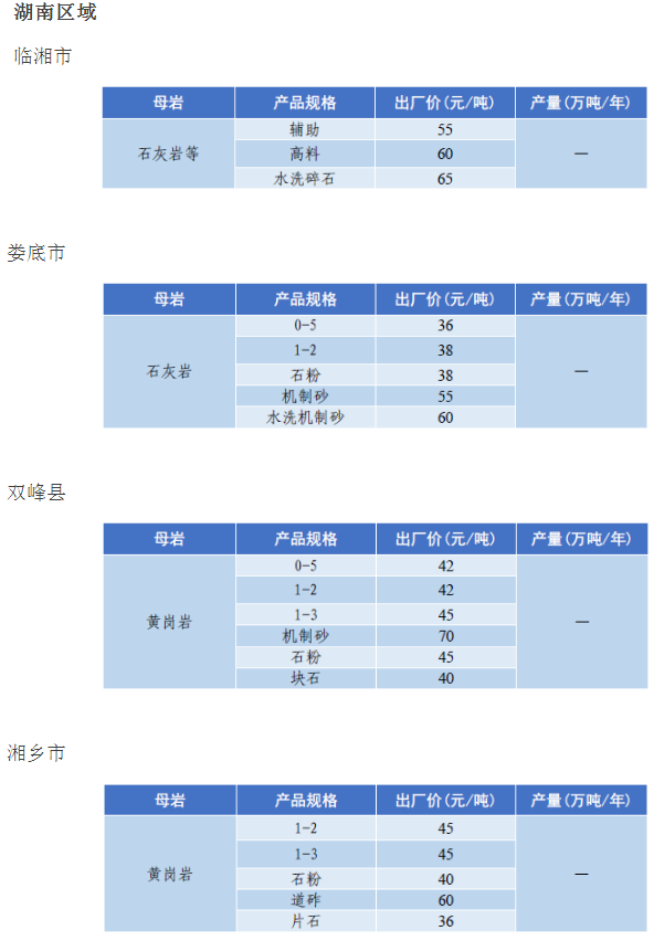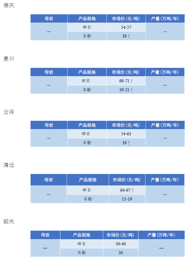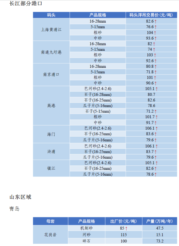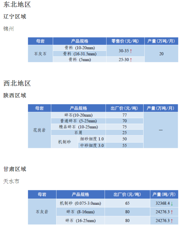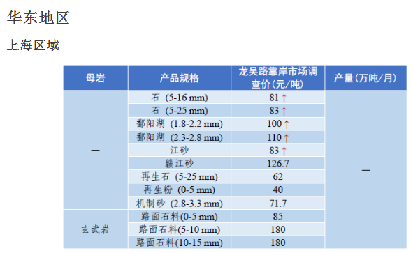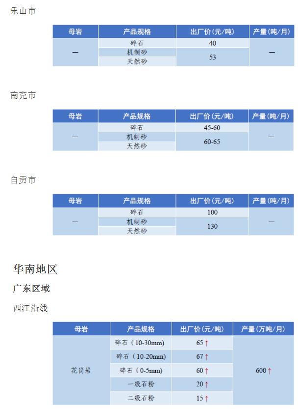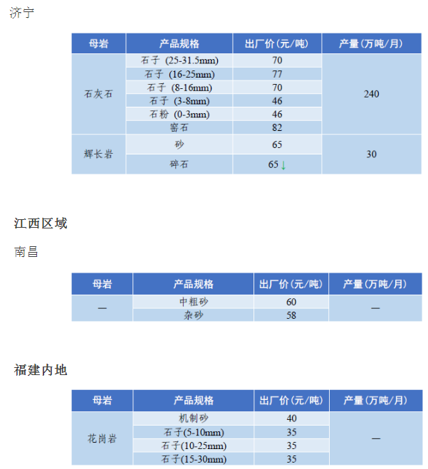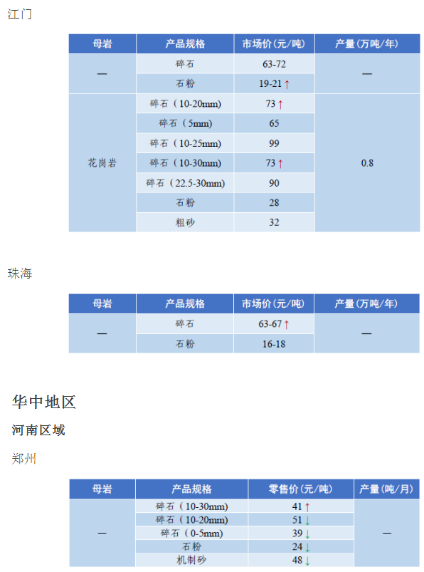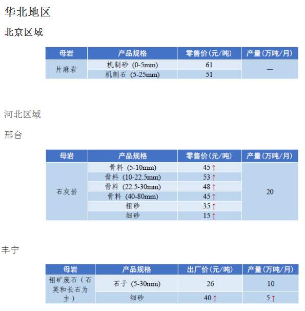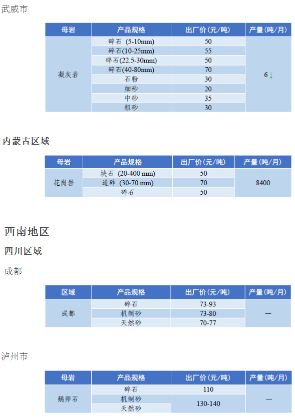 4月全國砂石骨料價格和產量