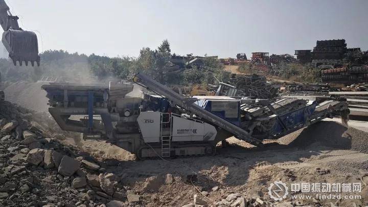 克磊鏝移動破碎篩分設備加工砂石骨料現場: