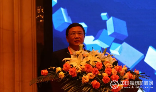 圖為:山美股份建筑固廢事業(yè)部部長陳俊友在本次大會作專題報告