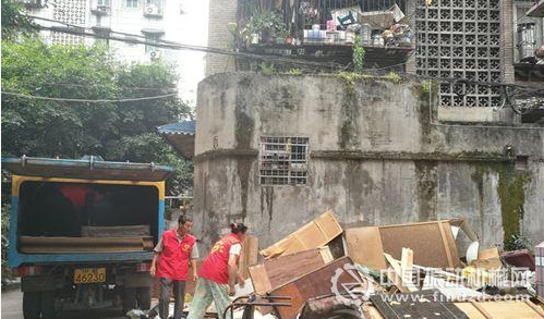 上午9點,記者在龍馬潭區中碼頭大件垃圾臨時堆放點看到,幾名環衛工人正在將堆積在垃圾庫前堆積的廢舊的沙發、床墊、桌椅等大件垃圾依次將其搬到大件垃圾清運車上。