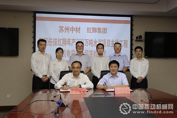 紅獅集團董事長章小華、集團副總經理郭其正、集團班子成員范煒剛,蘇州中材總經理林忠、副總經理陳攻等出席簽約儀式。郭其正、陳攻代表雙方簽訂主體工程、機電安裝合同。