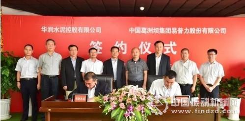 華潤水泥助理總裁兼首席采購官蔡翔與葛洲壩易普力副總經理王滔分別代表本公司在協議書上簽字