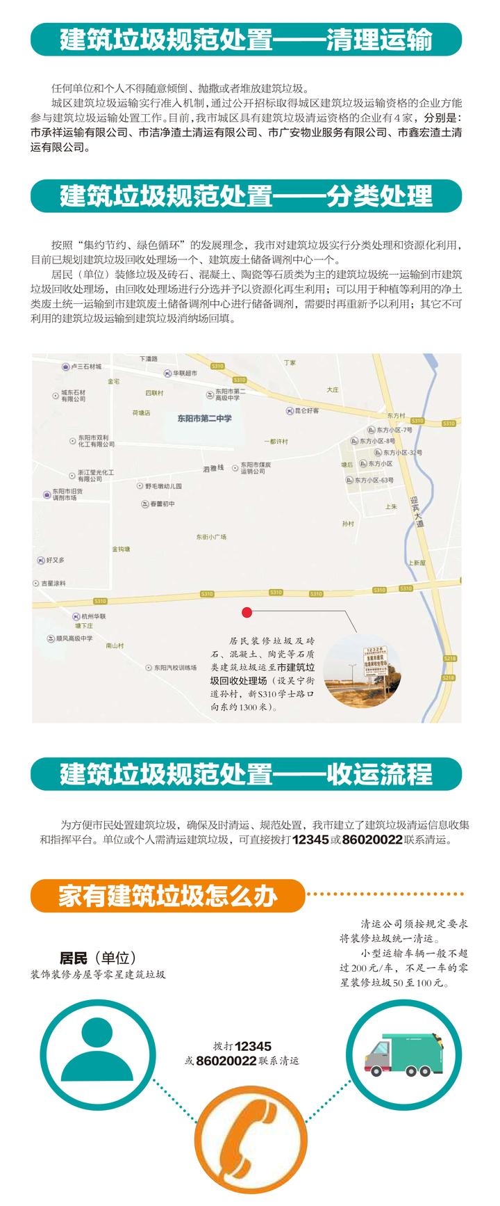 和生活垃圾相比,建筑垃圾種類多、體積大,處理起來更為麻煩。日前,東陽市出臺《東陽市城區建筑垃圾規范處置實施意見》,對建筑垃圾處置、利用等進行更明確管理。