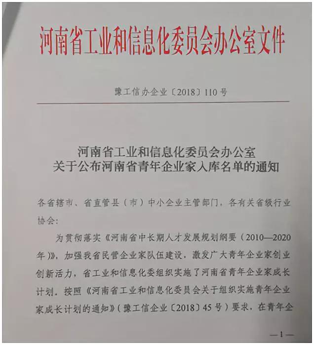 2018年3月,河南省工信委發布《關于組織實施青年企業家成長計劃的通知》,決定組織實施河南省青年企業家成長計劃,從全省篩選一批成長性高、創新能力強的優秀青年企業家,建立青年企業家庫,會同有關單位集聚要素資源進行重點培育。