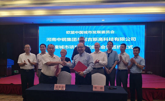 30日上午,河南中鋼再生資源利用有限公司(以下簡稱河南中鋼)與德國阿吉斯高科技有限公司無廢城市項目洽談及簽約活動在鄭州舉行,歐盟中國城市發展委員會張毅主席、歐盟中國城市發展委員會副秘書長、歐洲技術轉移聯合會總裁HenrichGuntermann先生、德國阿吉斯(ARJES)金屬拆解設備制造集團總裁HaynThomas先生、德國阿吉斯(ARJES)設備制造集團副總裁ElkeErnest女士,以及河南中鋼集團董事長、美國保爾再生資源投資有限公司副總裁吳克金先生、河南中鋼集團總裁吳繼忠先生等參加會談并出席簽約儀式。