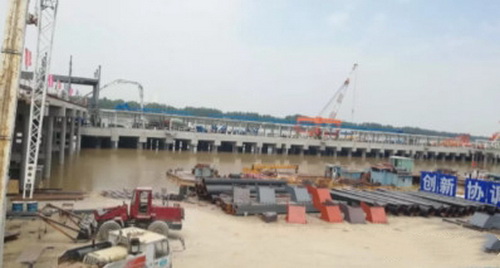 站在牛頭山碼頭工程皮帶機棧橋上,放眼望去,2艘大型起重船和20多條施工船舶穿梭有序,忙而不亂。200余名工人分布在鋼平臺和鋼甲板上緊張施工、揮汗如雨。“之前,這里是5家小散碼頭,出貨量少、岸線使用效率不高。”工程現場負責人陳文高說。近一公里長的岸線上,一期工程的7個泊位已經建成3個,第二臺裝船機正在緊張安裝、跨江堤鋼引橋第二榀已經完成。