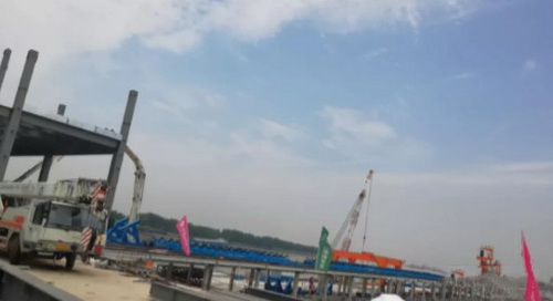 據了解,物流廊道工程主要承擔將礦石加工系統生產的成品混合料運至碼頭堆場的任務,廊道全長12.96km,起點為礦石加工系統混合料堆場,終點為牛頭山港區成品混合料堆場。物流廊道輸送機帶寬2.4m,帶速5m/s,運輸能力13000t/h。目前長九項目大部分部位已轉序進入金結制安階段,全部金屬結構制作安裝量約44000噸,板材安裝量約39萬平方米,任務艱巨,是工程建設的關鍵工序。