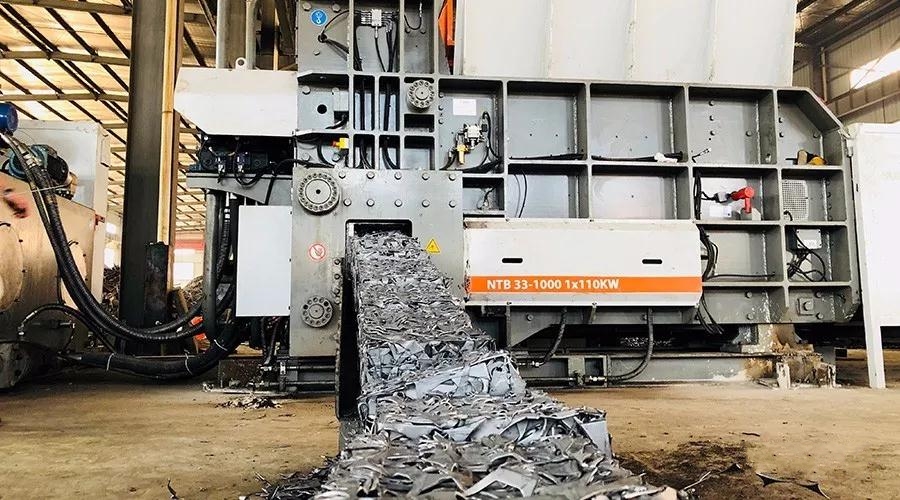 美卓的這臺NTB33-1000廢金屬打包機安裝于張勝公司金屬打包車間,用于打包沖壓邊角料,每小時處理量達11噸,可產(chǎn)出300x300x300mm ~ 300x300x600mm的金屬包塊,作為鑄造廠或者鋼廠需要的優(yōu)質(zhì)煉鋼(鐵)爐料。