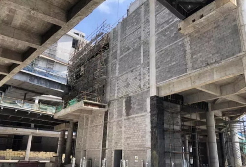 在砼支撐建筑廢棄物綜合循環利用及制磚廠房里,混凝土建筑垃圾通過破碎及砌塊制作技術,將項目混凝土支撐、分隔地連墻、截樁樁頭等混凝土建筑垃圾實現100%的現場資源化再利用?,F場約35000m³的混凝土建筑垃圾制成約35000t的再生級配碎石,同時利用破碎時產生的石粉,生產約40000m³的混凝土砌塊,其中約11000m³用于本項目的地下室正式砌筑工程。
