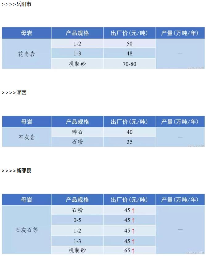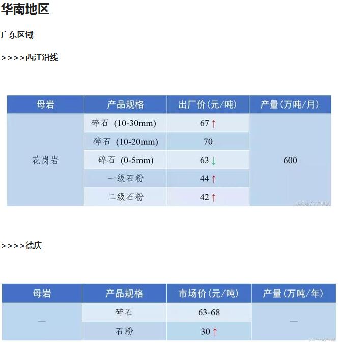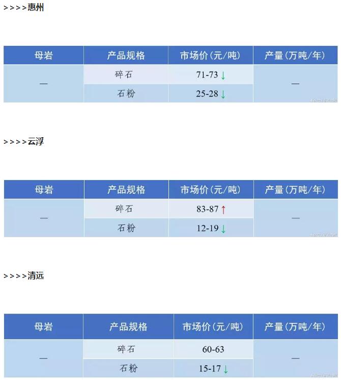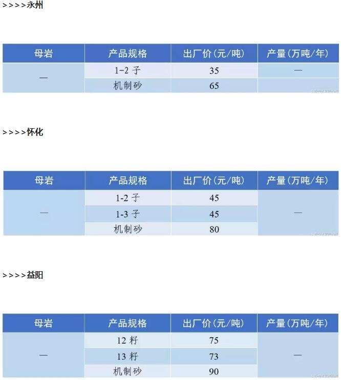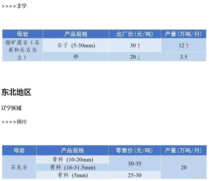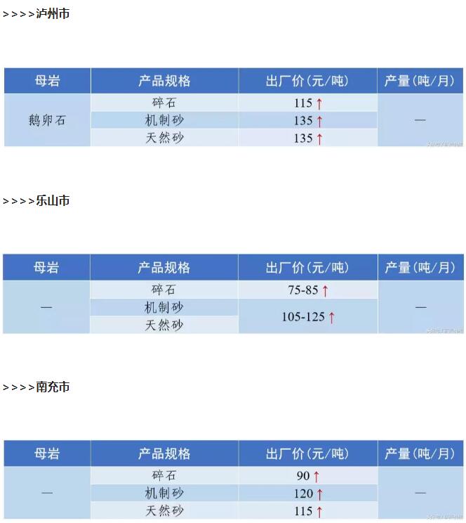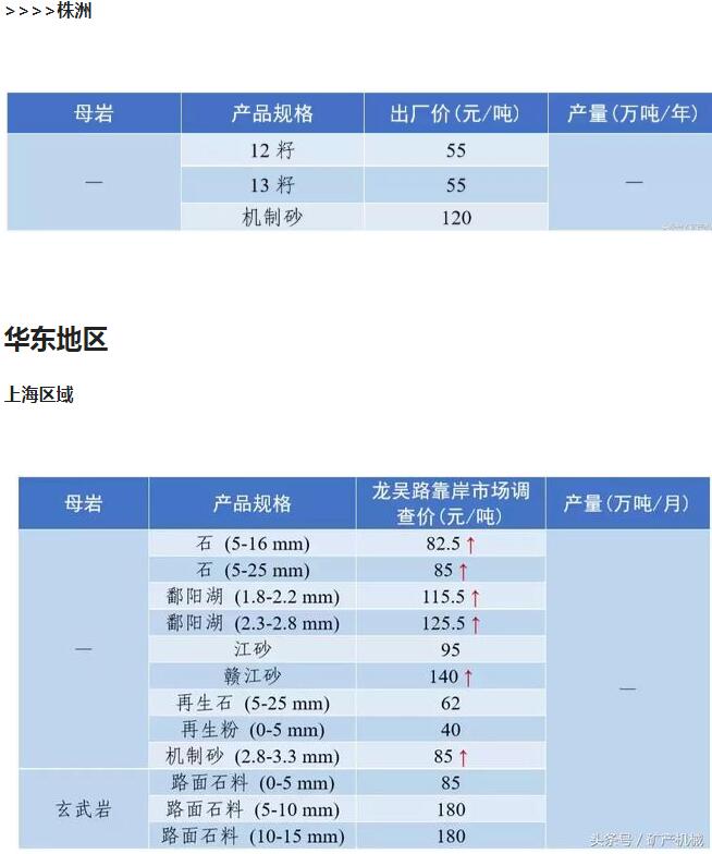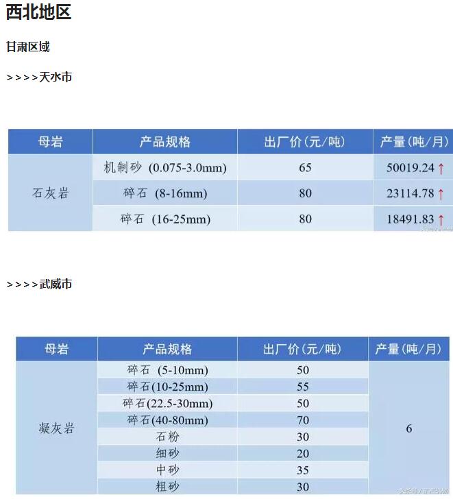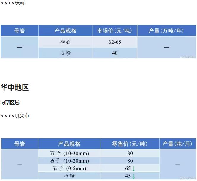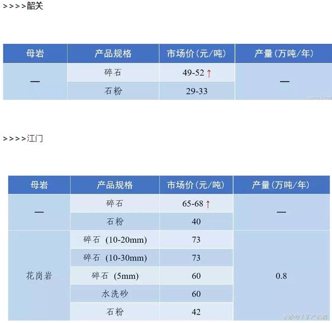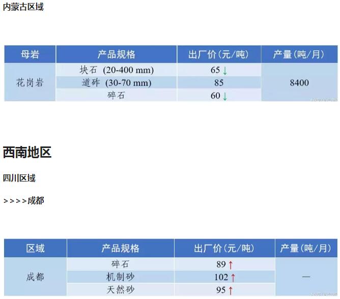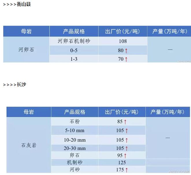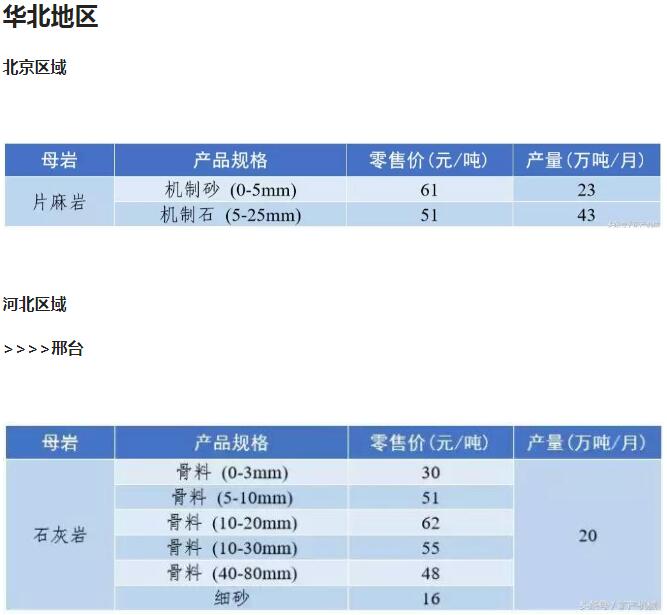 2018年9月全國砂石骨料價格和產量 ..