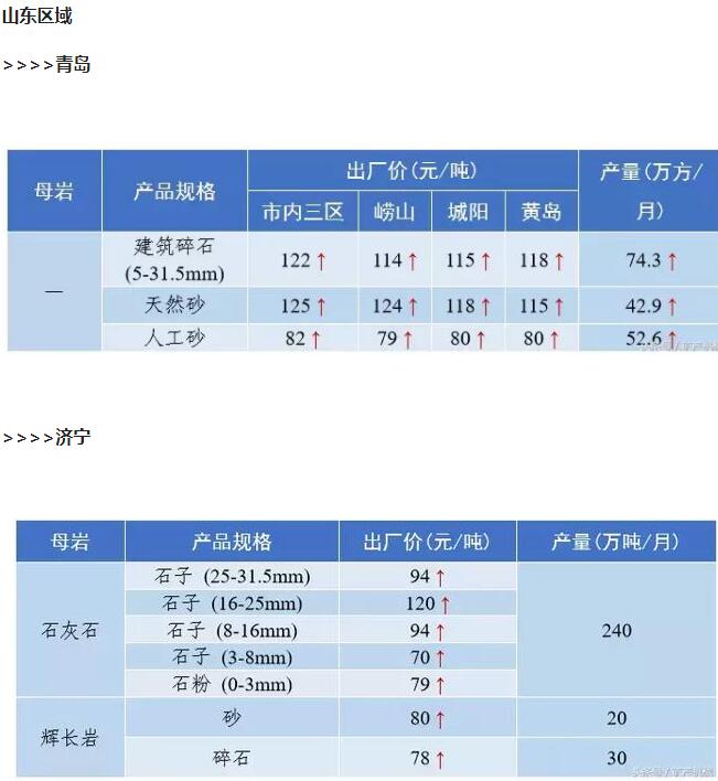 2018年9月全國砂石骨料價格和產量