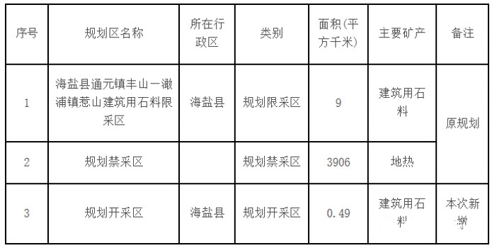 《嘉興市礦產資源與地質環境保護規劃(2016-2020)》調整如下: