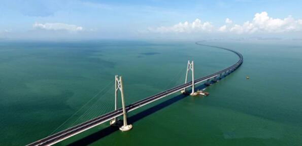港珠澳大橋跨越伶仃洋,是目前世界最長的跨海大橋,從設計到建筑歷時14年。其總長約55公里,東接香港,西接廣東珠海和澳門,是粵港澳三地首次合作共建的超大型跨海交通工程。2015年英國《衛報》評選的“世界七大奇跡”工程將港珠澳大橋工程列在了第三位。