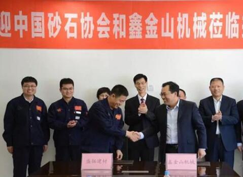 中國(guó)砂石協(xié)會(huì)會(huì)長(zhǎng)胡幼奕,保定市發(fā)改局局長(zhǎng)安同生,棗莊鑫金山智能機(jī)械股份有限公司董事長(zhǎng)孫中巖、總經(jīng)理裴尚,源盛城發(fā)集團(tuán)董事長(zhǎng)劉翠卿、總經(jīng)理高磊,源盛城發(fā)集團(tuán)保定盛拓建材加工有限公司總經(jīng)理魏增軍、副總經(jīng)理張雷、許亞兵、工程部經(jīng)理靳衛(wèi)東等參加簽約儀式。