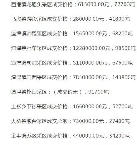 2018年7月3日,江西九江修水縣22處河道采砂點兩年開采權(quán)成交結(jié)果進行了公告。