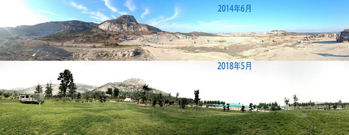 經(jīng)過(guò)八年堅(jiān)持不懈的整治,梨溝山1400畝歷史遺留廢棄礦山,恢復(fù)綠化植被面積已達(dá)1039畝,一改過(guò)去的滿(mǎn)山礦坑的荒蕪景象。漫山遍野的礦洞已經(jīng)被填平,裸露的山體重新覆蓋上了土壤,成片樹(shù)苗在茁壯成長(zhǎng)。整治后的生活垃圾填埋場(chǎng),現(xiàn)已是一座四季常綠、花香遍山的植物園,人們已經(jīng)難以想象,山頭底下曾經(jīng)是平度20多年來(lái)的垃圾填埋場(chǎng)。