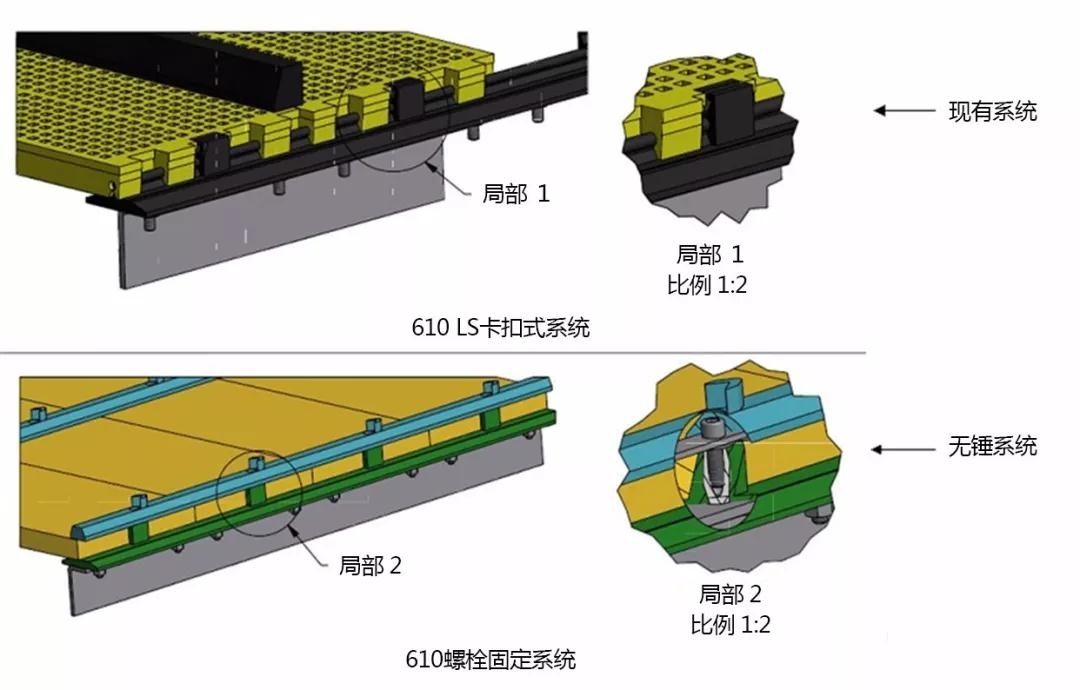 與傳統系統不同,新的篩網安裝系統采用了螺栓和防護壓塊,而不是聚氨酯卡槽來固定篩板