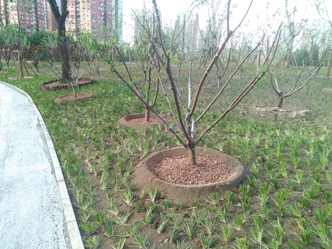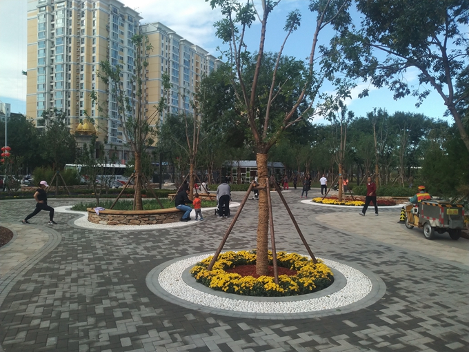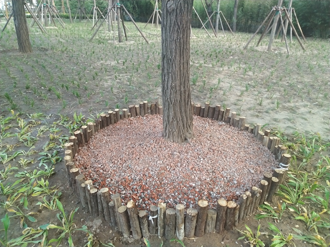 “把再生骨料用于園林綠化,嘉囿城市休閑公園是豐臺第一個試點。”豐臺區園林綠化局局長王世義輕輕抓起一把樹池內的骨料說:“這種材料透氣性好,結合綠化技術,就能讓土壤更好地呼吸、保水和透水。”