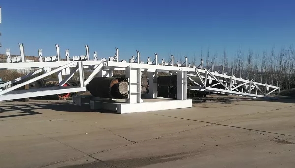 該設施是以驅動裝置平臺為基礎,以方鋼為底座向兩側各延伸出12米的一種可拆卸式端幫膠帶機架,適用于原煤搬家倒面作業,能有效克服以往傳統式的現場組裝混凝土固定驅動裝置的一系列短板,極大的縮短工期,減少人力、物力的投入,有效提高工作效率。