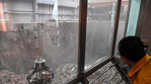 近日,在蘭州中鋪子生活垃圾焚燒發電廠一期項目廠房內,工作人員正在處理生活垃圾,做焚燒前的準備