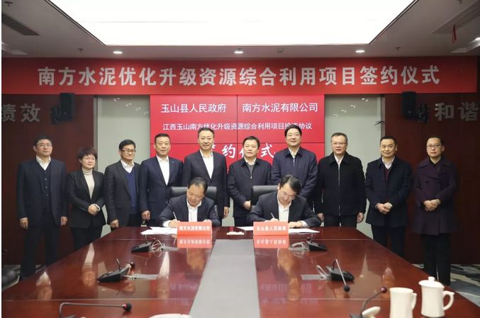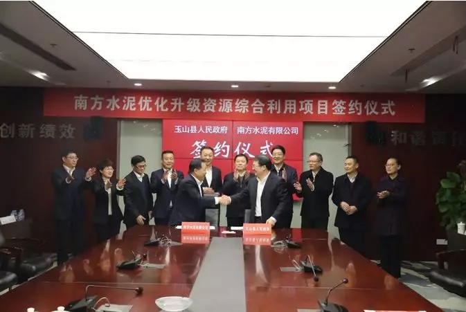 中國建材副總裁、南方水泥總裁肖家祥,上饒市副市長俞健,上海市規劃和自然資源局副局長王訓國,玉山縣委書記胡劍飛分別講話,南方水泥常務執行副總裁張劍星,玉山縣委副書記、縣長徐樹斌代表雙方簽約,市工信委主任彭民堅,南方水泥副總裁、江西南方總裁汪東順,玉山縣委常委、宣傳部部長胡琳宇,玉山縣副縣長汪美玉,江西南方副總裁、總工程師蔣德洪,江西南方副總裁涂順祖等出席簽約活動。