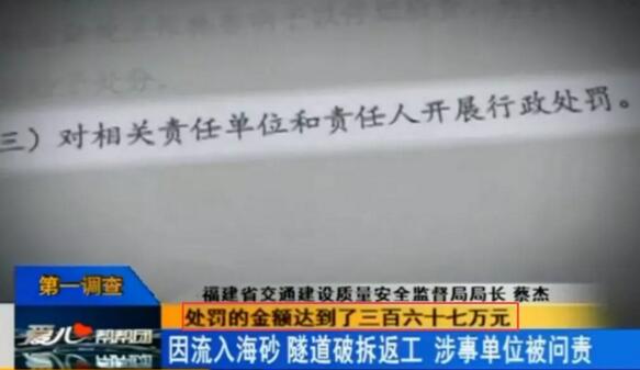 此外,福建省住建廳調查發現,莆田有多家攪拌站存在違規使用海砂的行為,被予以頂格處罰。而據福建電視臺記者調查,這些含有海砂的混凝土除了流入長福高速工程,還流入了莆田部分樓盤。這些含有海砂的混凝土將被用于澆筑樓板、承重墻等,而海砂一旦進入建筑物猶如癌細胞擴散,將會大大縮短建筑使用壽命。