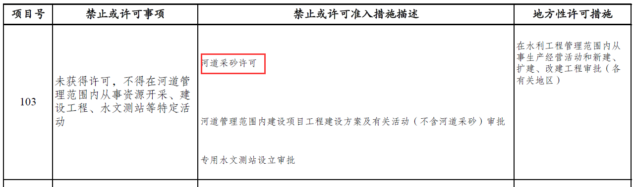 清單主體包括“禁止準入類”和“許可準入類”兩大類,共151個事項、581條具體管理措施。砂石行業相關的礦山開采、河道采砂均被納入負面清單“許可準入類”。