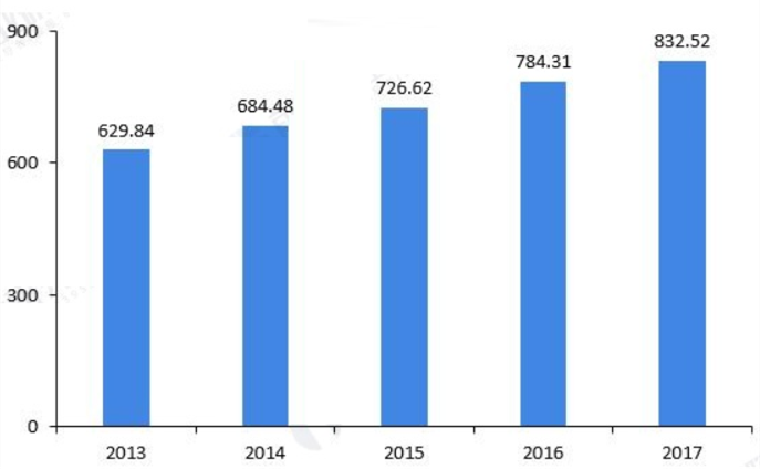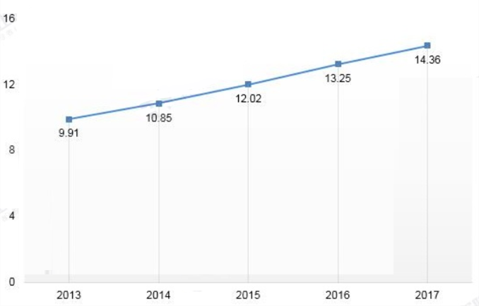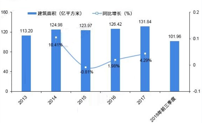 圖4 2013-2017年中國舊建筑拆除面積(億平方米)