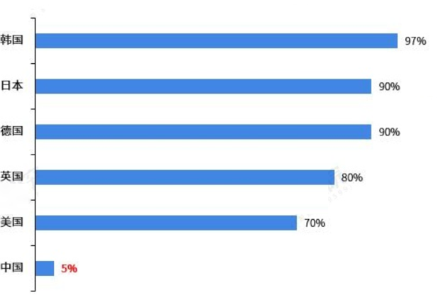 圖1 各國建筑垃圾資源化率對比(%)