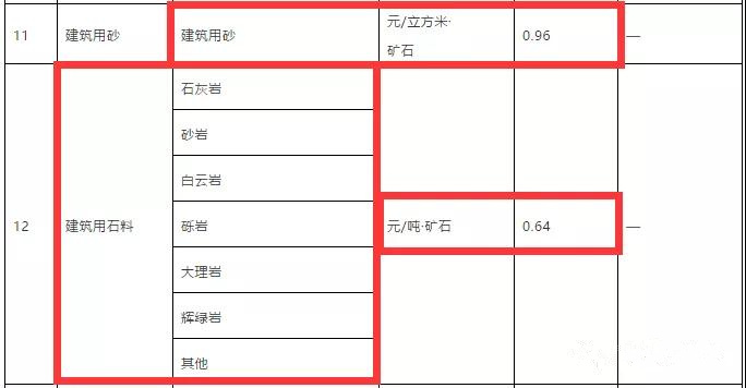 石灰巖、砂巖、白云巖、礫巖、大理巖、輝綠巖等其他建筑用石料采礦權基準價為:0.64元/噸·礦石。