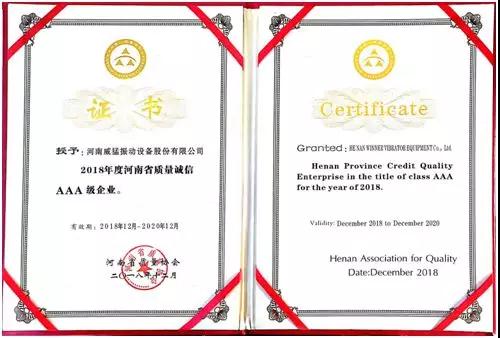 近日,河南省質量協會頒布了153家2018年度河南省質量誠信A等企業名單,其中A級企業63家,AA級企業52家,AAA級企業38家。威猛股份憑借過硬的產品質量、良好的企業信用名列其中,榮獲“2018年度河南省質量誠信AAA級企業”稱號。