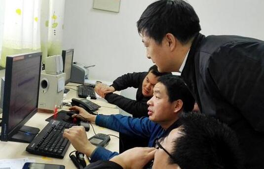 肖文剛(中間)在與同事交流設備振動分析