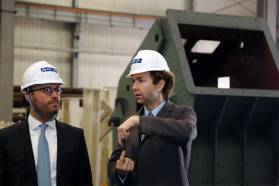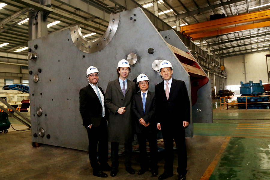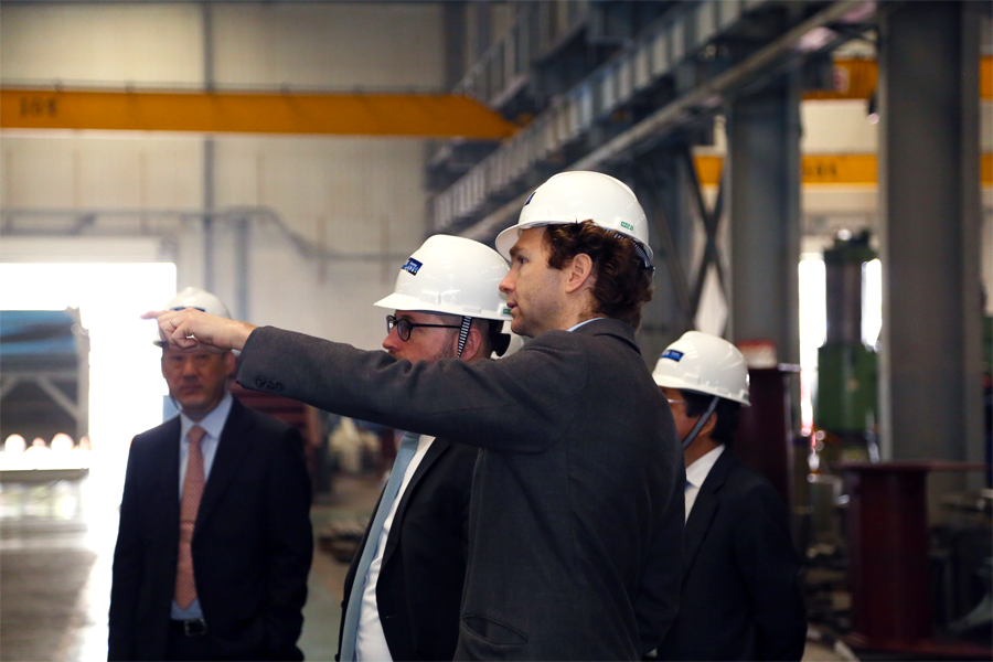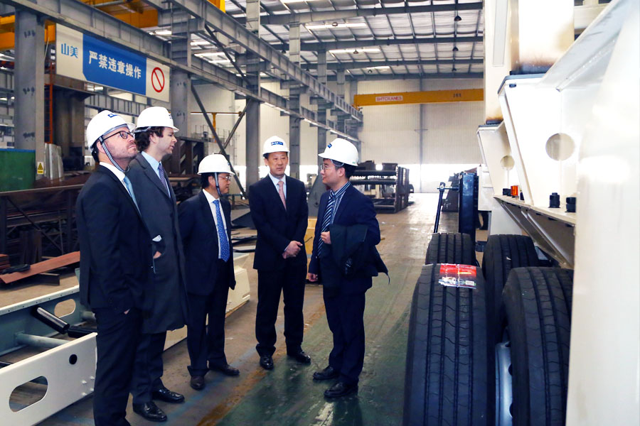 Mortimer Glinz先生一行在楊安民董事長等人的陪同下首先參觀了子公司山美股份的設備制造車間,工人們熱火朝天,干勁十足,緊張有序,發貨區設備包裝規范、整裝待發。Mortimer Glinz先生詢問了各種產品的銷售和發貨情況,看到車間忙碌的生產狀態,特別高興。