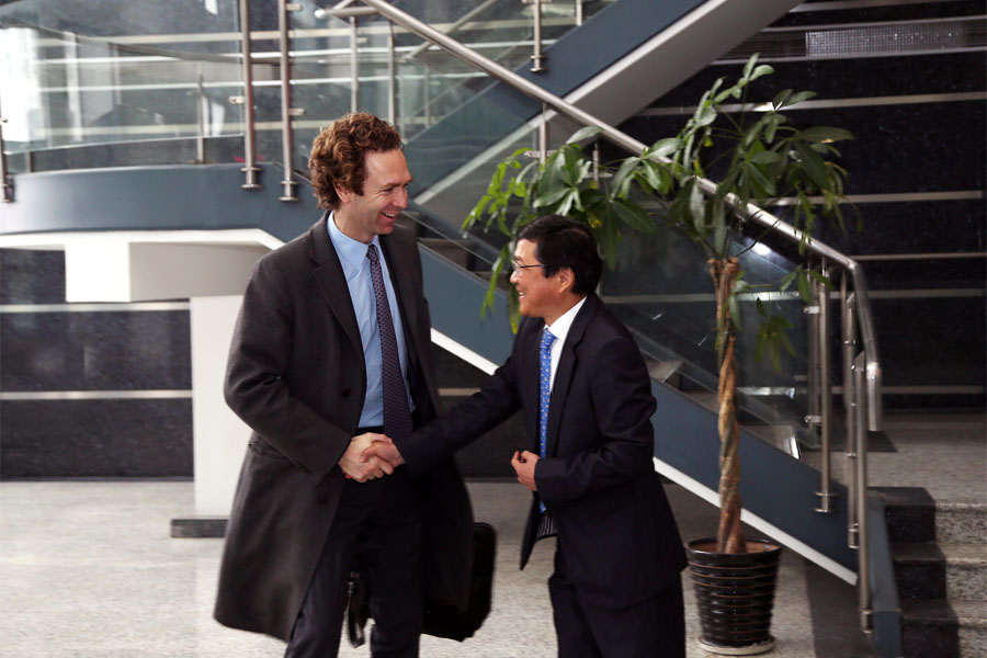 2019年3月25日,德國Schmidt, Kranz & Co. GmbH公司(德國SK集團)新任董事長Mortimer Glinz先生、首席財務官Arno Fehler先生、合資公司監事Thomas先生蒞臨山美股份,出席合資公司第二屆董事會第四次會議。合資公司董事長楊安民先生率領董事徐毅先生,董事張元凱先生,董事袁海生先生等中方董事參加了會議。